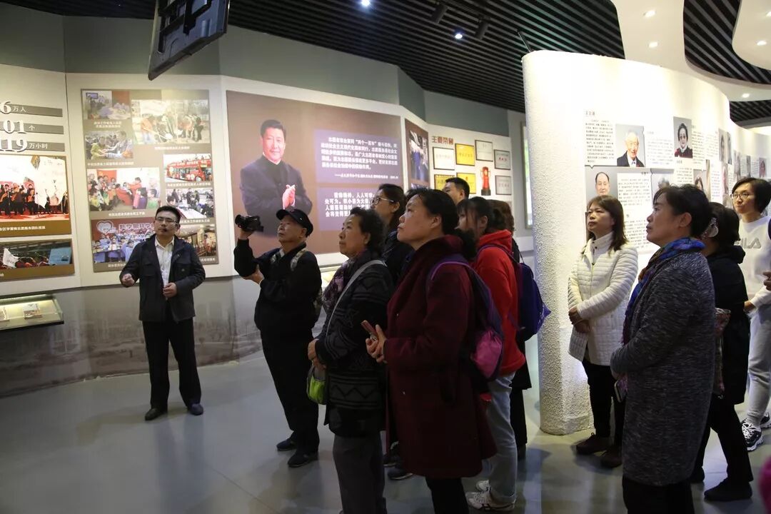 在参观中,工作人员详细介绍了习近平总书记视察社区、参观和平区社区志愿服务展馆的情形。